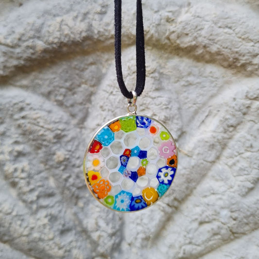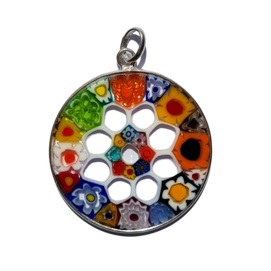 Small Murrina Glass Button - Full Millefiori Multicolour